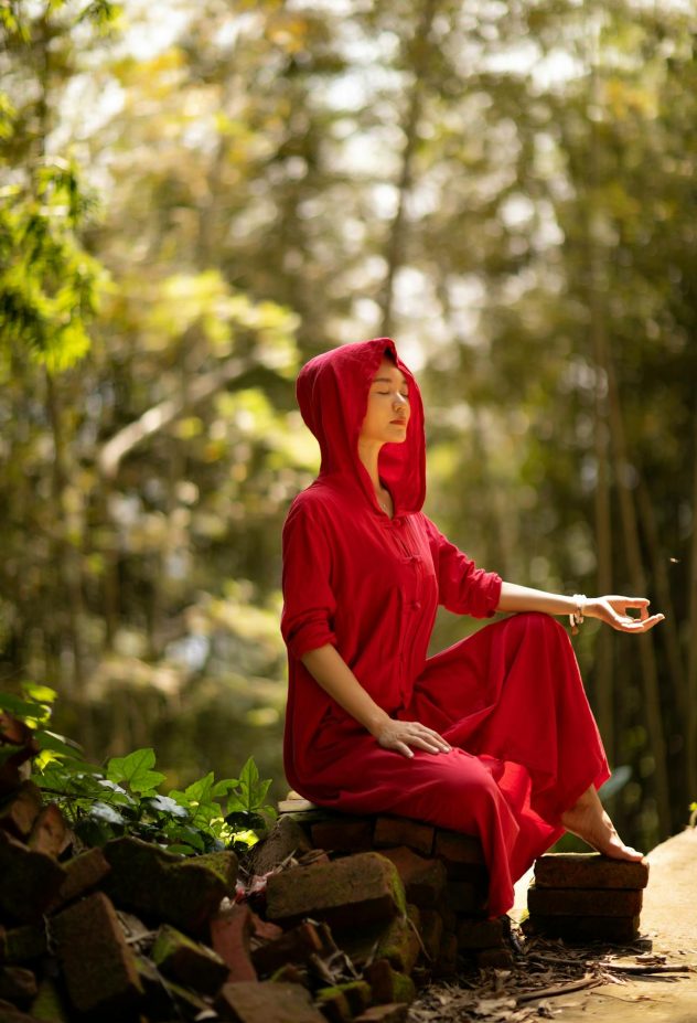 Photo by RAY LEI: https://www.pexels.com/photo/woman-wearing-a-gown-sitting-in-the-forest-and-meditating-13865963/